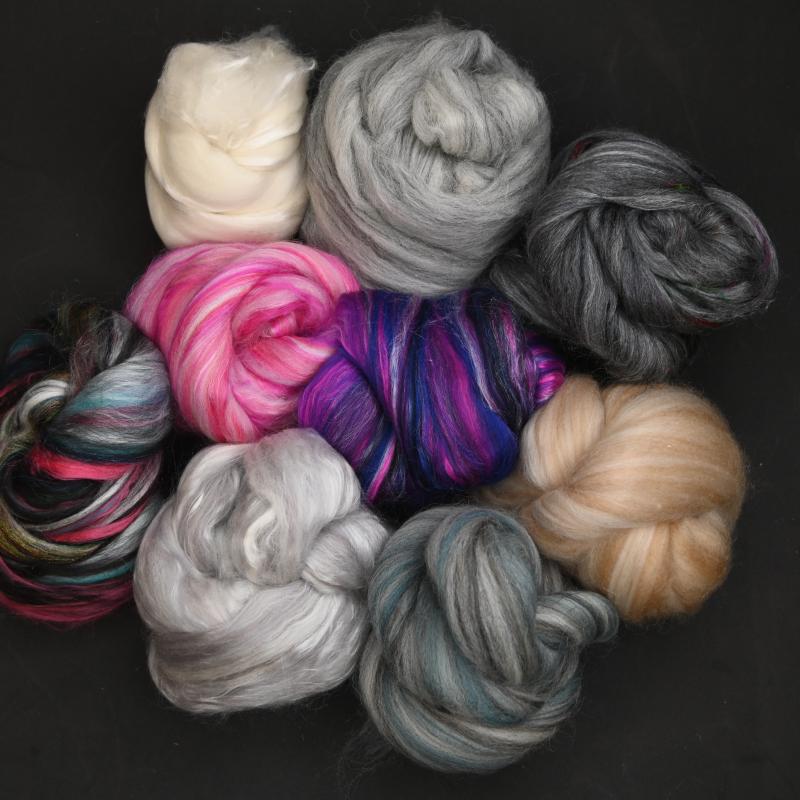 Explore nine different fiber blends while discussing approaches to spinning different fibers - which drafting methods pair well with particular fiber preps or blends? Should you judge a fiber by your first impression? We will discuss worsted and woolen drafting methods and how they relate to the fiber you spin. Fiber blends will include a variety of different wools, silks, flax, viscose and luxury fibers such as yak, camel and alpaca.