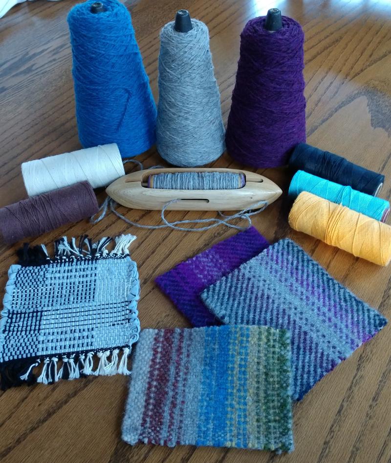 Students in this class will experience every aspect of multi-shaft weaving; planning a project, winding warp chains, threading a loom, and weaving. There will be a variety of four-shaft table and floor looms pre warped by the instructor with a variety of colors and patterns. The projects are mug rugs and hot pads, some will be "rag rug" style with cotton rug warp and fabric strips for weft, others will be wool warp and weft. Features and uses of different types of looms, shuttles, warping tools, etc. will be discussed. Students will be instructed on how to finish their projects at home.