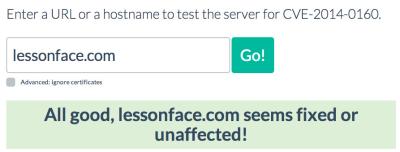 Lessonface is safe from the heartbleed bug, but it's still a good idea to change your password (here as on any site that has the prefix https in its URL).
