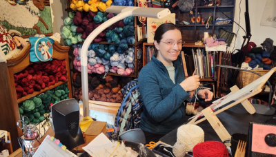 We’d like to introduce you to one of our top Fiber Arts teachers, Laura Berlage. Laura is a storied practitioner within her local fiber-shed. She weaves together local stories, antique ballads, and homespun techniques to create a truly folky online class experience. She teaches for many folk schools and fiber arts organizations, helping to support her family’s fiber and dairy farm in Wisconsin.