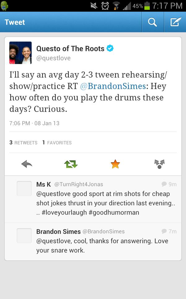 A couple of weeks ago I was riding the bus home and wondering how much a professional drummer might practice a day. So, since he’s a great drummer (see video below for evidence), I tweeted the question to Questlove, the drummer from The Roots and The Jimmy Fallon Show and a noted Twitter enthusiast. He responded that he generally plays two or three hours a day. That’s a fair amount, but some pros find the need to practice even more, especially concert pianists or those actively involved in recording an album or preparing for an upcoming tour or performance.
