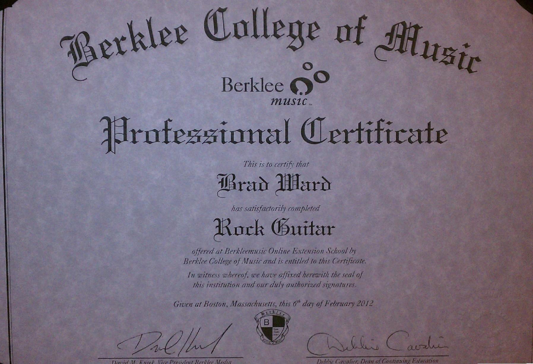 Berklee College of Music - Professional Rock Guitar Certificate (2012)