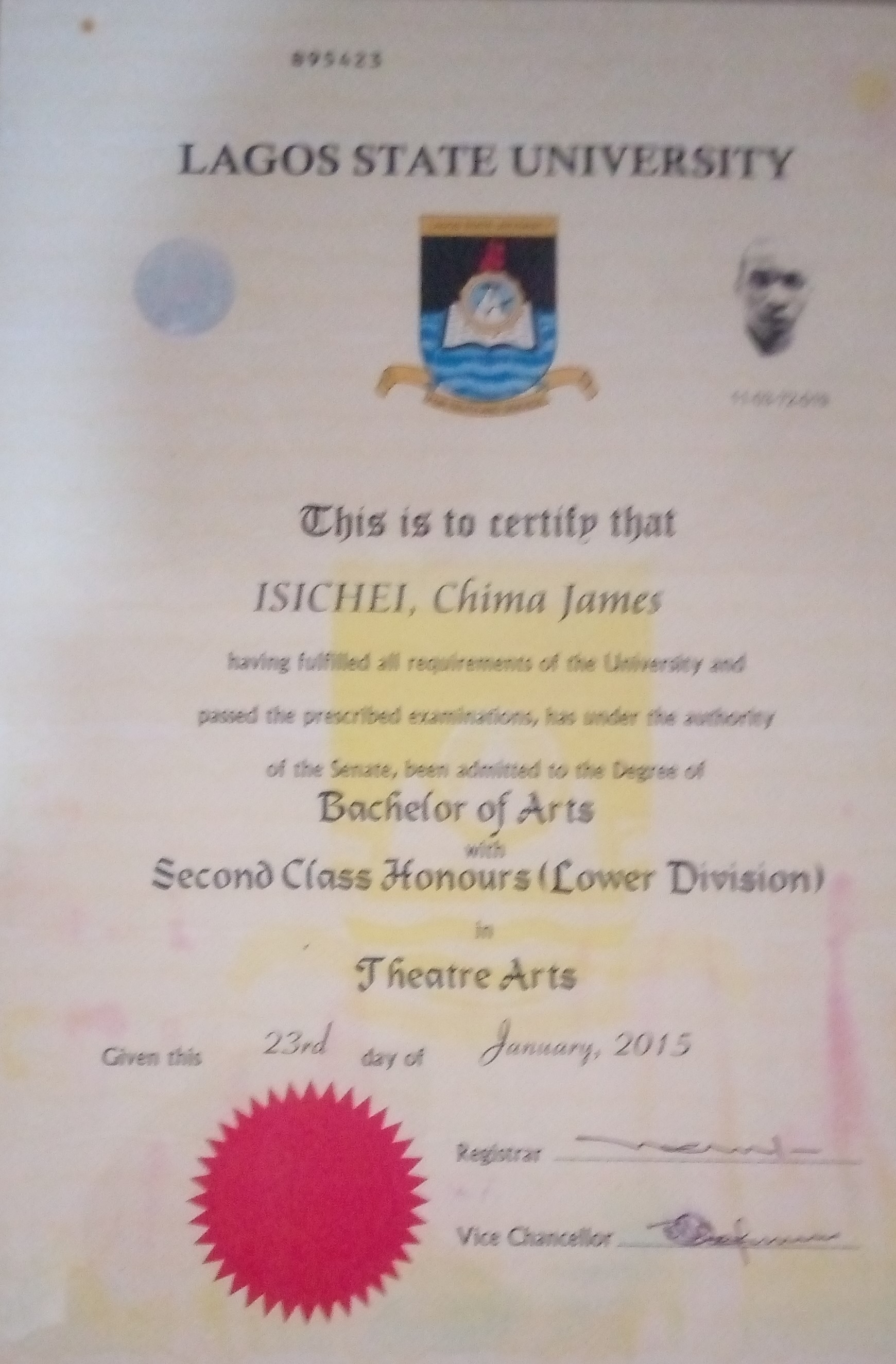 B.A, Theatre Art, Lagos State University, Lagos, Nigeria.