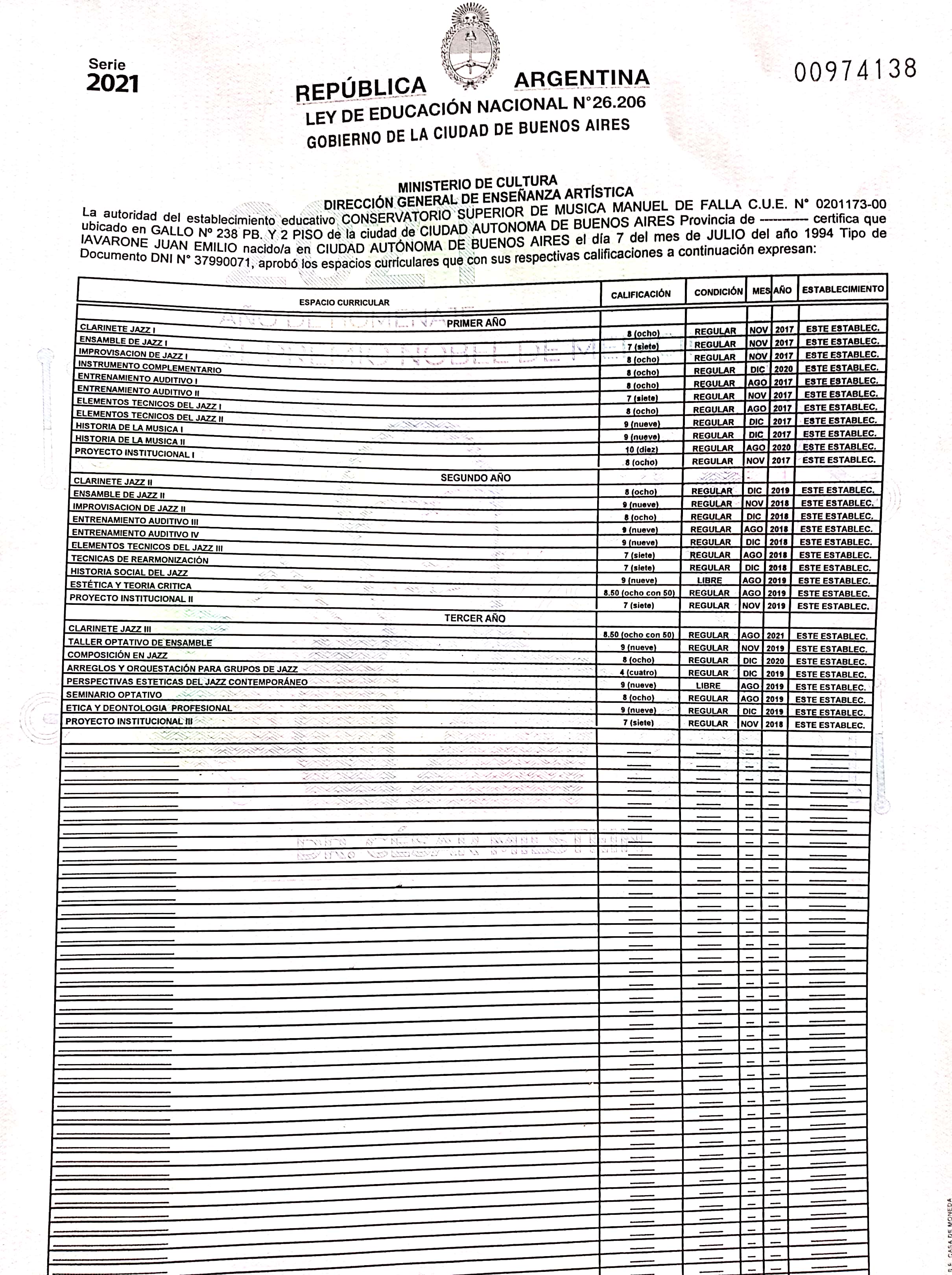 I'm a Professional Musician from Buenos Aires, Argentina. I studied Music at Jazz School in "Conservatorio Manuel de Falla". I have also studied with Maestros like Carlos Michelini, Marcelo Ruiz Schulz, Guillermo Fernandez.