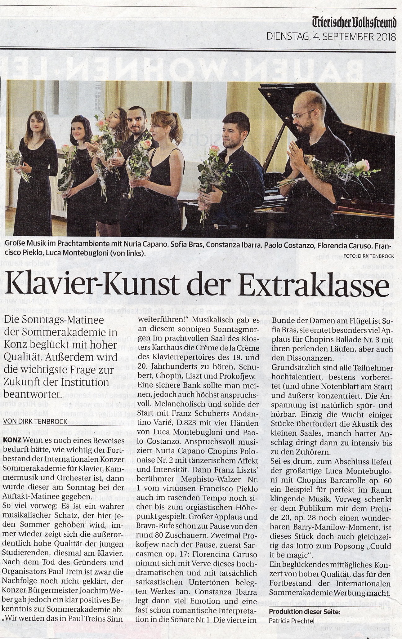 In 2018, I was selected to join the Summer Academy for Piano and Chamber Music in Trier, Germany. This experience allowed me to perform in prestigious venues such as the Beda Haus Cultural Center in Bitburg, the Saalbau Losheim concert hall in Losheim am See, the Church of Welschnofen, and the "Kloster Karthaus" academy in Trier. Additionally, I actively participated in master classes with internationally renowned teachers, enhancing my academic music interpretation.