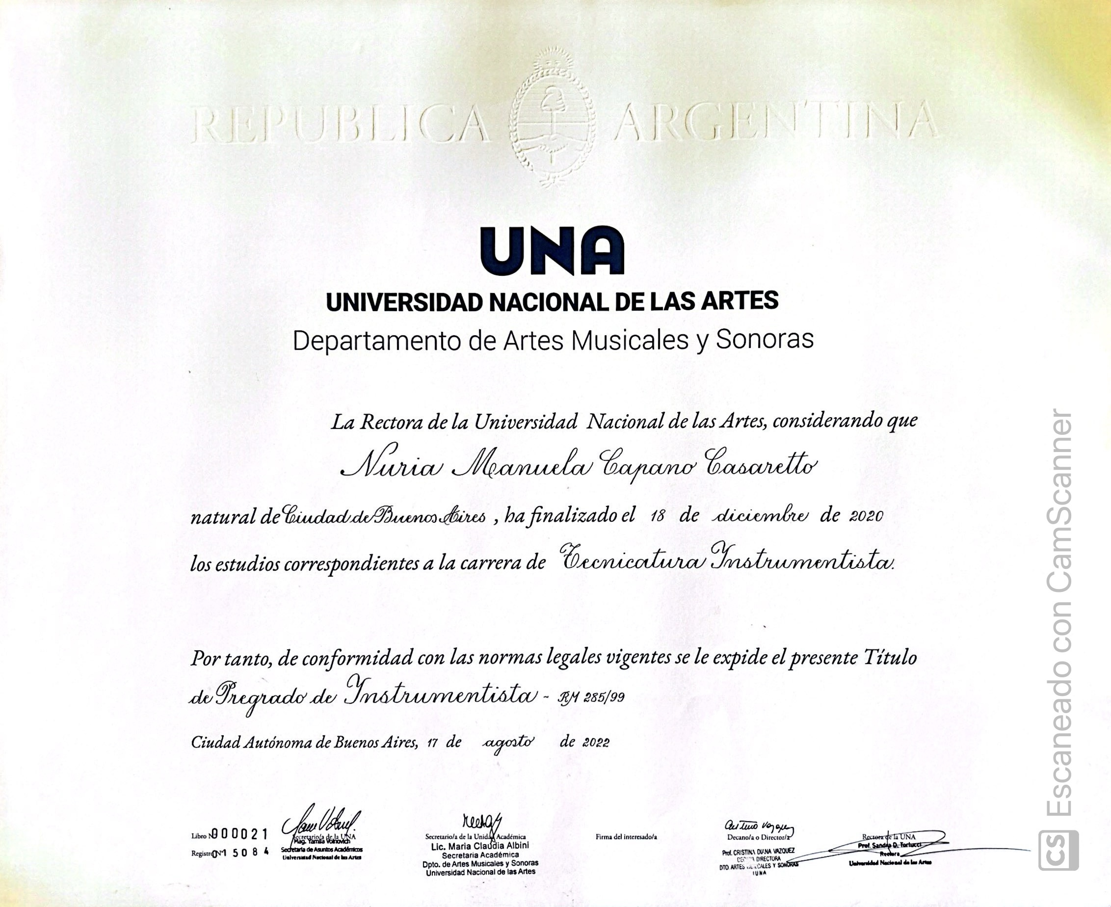 Superior Conservatory of Music, Argentina, Graduated 2013